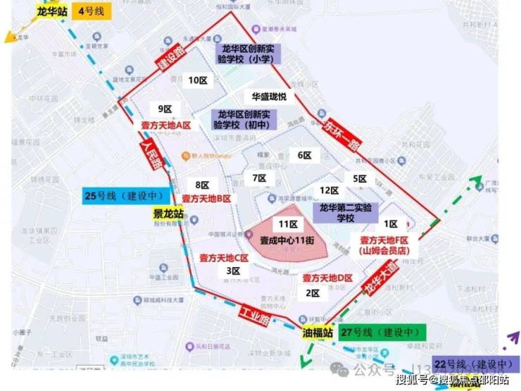 距离地铁4号线龙华站直线距离约500m,在建地铁22、25、27号线均已动工建设,预计2028年通车,其中项目临近景龙、油福、油松3个站点,4条地铁4站点汇聚,汇聚八方客流。(最终以政府公示及实际建成为准)。