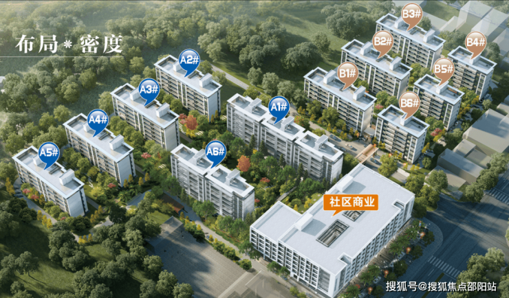 业态分布:12栋6层纯板式真洋房+1栋商业综合体约1.2万㎡