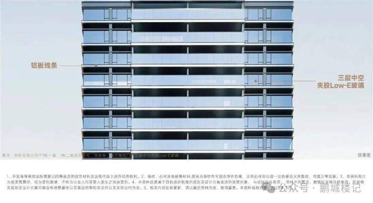 外立面采用玻璃幕墙、铝板线条与真石漆,搭配三层中空LOW-E夹胶玻璃,兼顾美观与隔音隔热性能。室内精装配置YKK AP系统窗、智能家居系统,公共区域设置酒店式归家大堂、六大主题会客厅及高定园林景观。