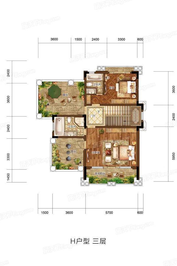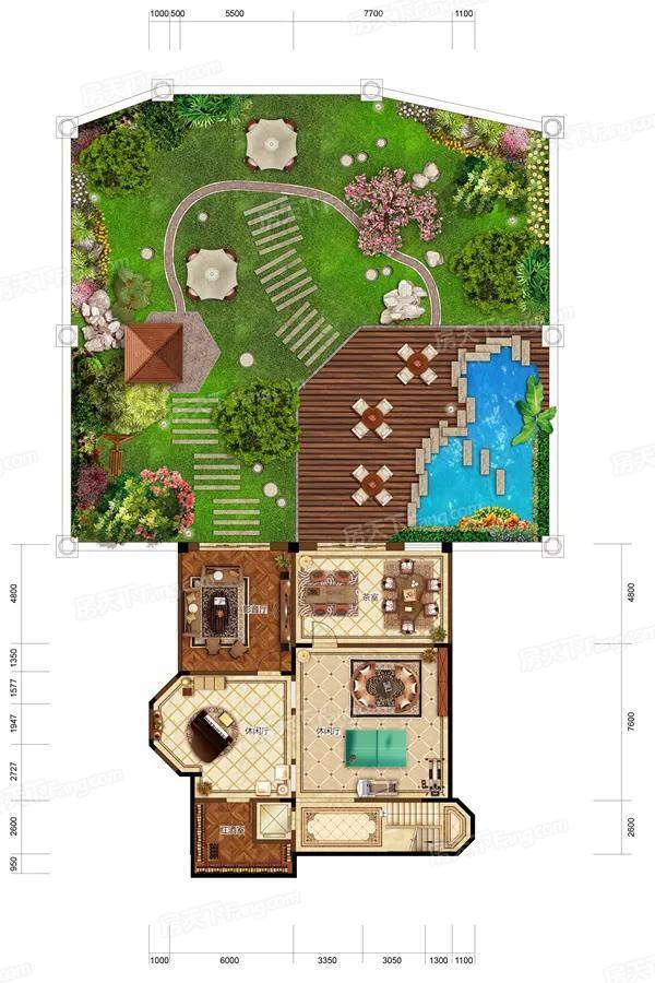 花园面积:631-897㎡赠送面积:759-1297㎡