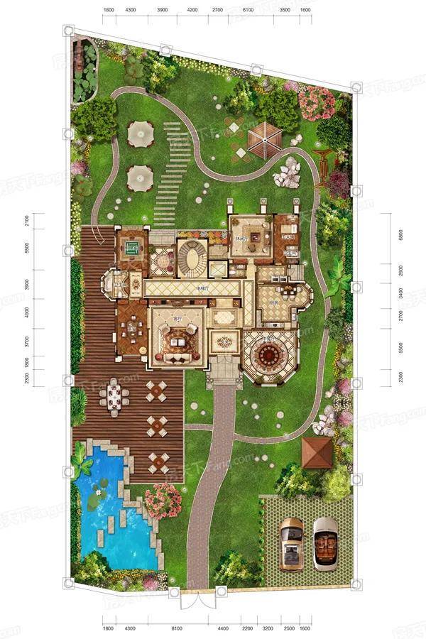 花园面积:2406-2850㎡赠送面积:2877-3321㎡