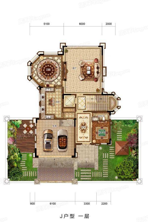花园面积:793-1027㎡赠送面积:993-1227㎡