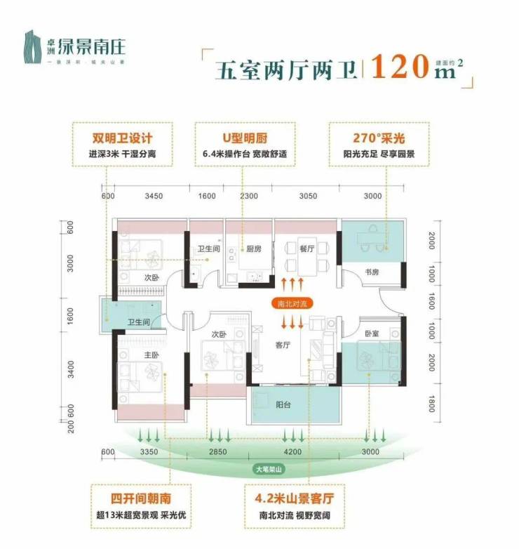🔥 120㎡ 五房两卫 南北通 赠送:22㎡