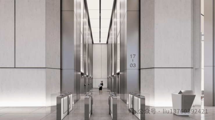 电梯采用全球第二大电梯品牌——迅达,其高速电梯在高端写字楼市场占有率位列前三。T1栋中、低区采用3.5m/s高速电梯,高区采用5.0m/s的超高速电梯,结合迅达最新的目的楼层选层PORD系统,缩短候梯时间提高效率,给客户最佳的商务乘梯感受。