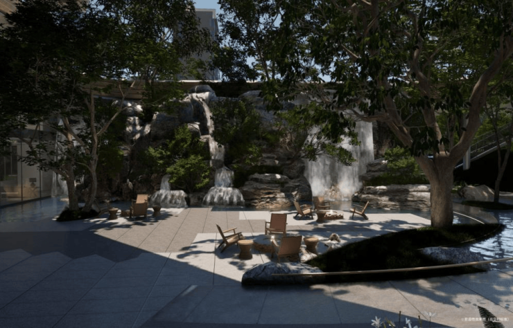 真正的商都气质,不止于在潮头的勇立,也在于繁华鼎沸之中对于宁静致远的渴求。琶洲·樾丨华樾汲取“城市山林”大隐智慧,沿用环秀山庄以小见大的山水造景方式,将古典层叠错落的空间感以现代化的设计手法演绎,构建出“不出城郭而获山林之怡,身居闹市而享林泉之趣”的园林趣境。