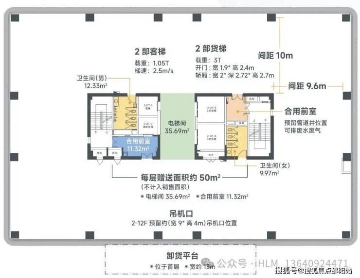 【硬件配套】“三废”处理装置;首层配备卸货平台,快捷上下货;2-12F预留约宽9*高4米吊机口位置(根据需求定制)