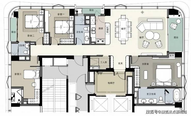 太子湾·鲸域作为公寓产品,具备了十分完善的居住功能,阔绰全功能主卧套间+父母套间(客人套间)+小孩套间+工人房,家族大宅的尊崇顶配,使产品的豪宅属性提高了一个档次。