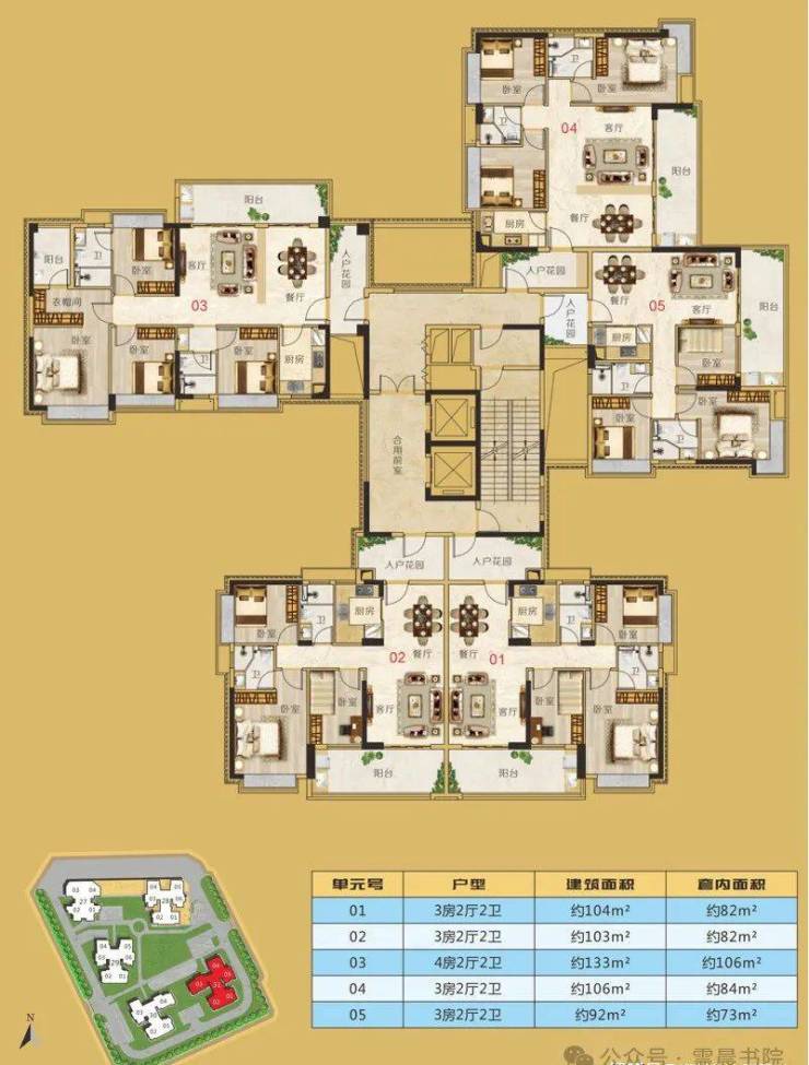 E户型 建面约106m² 3房2厅2卫