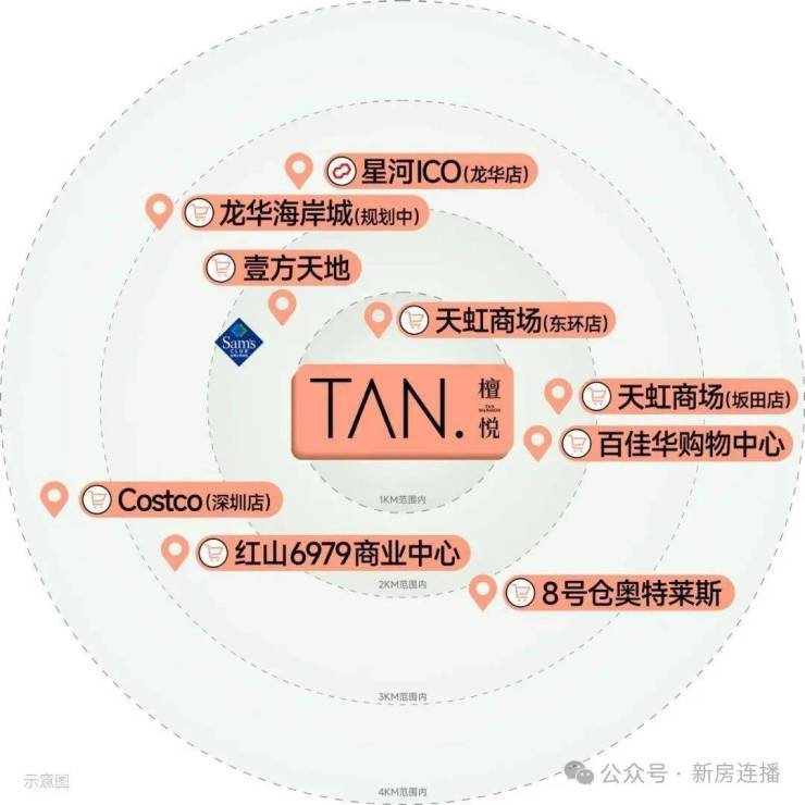 项目自带特色商业街,并且紧邻项目有天虹商场(东环店)檀悦府售楼处电话:400-150-5057,距离壹方天地(建面约60万㎡航母级体验式商业集群)约1.5km,周边还有山姆会员店、天虹商场(坂田店)以及Costco会员旗舰店