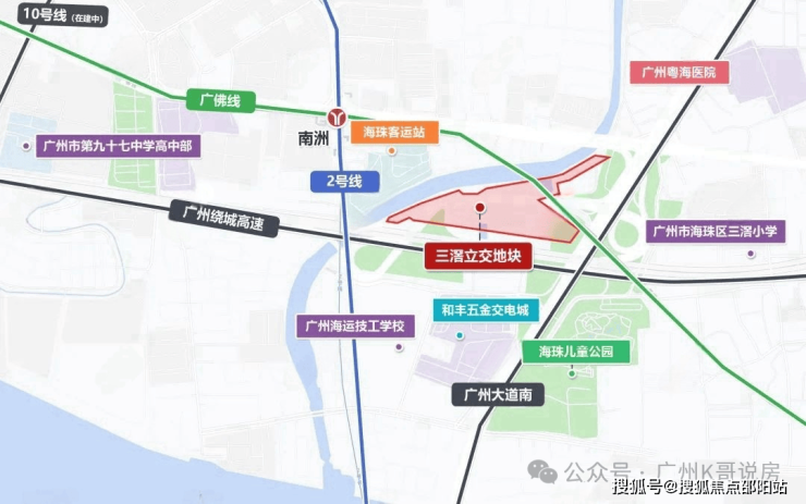 项目地块距离2号线和广佛线交汇的南洲站直线距离仅约400米,广州绕城高速和广州大道在项目旁交汇,位置可以说是“四通八达”,但因地块被不少主干道包围,自然避免不了噪音和粉尘的干扰。