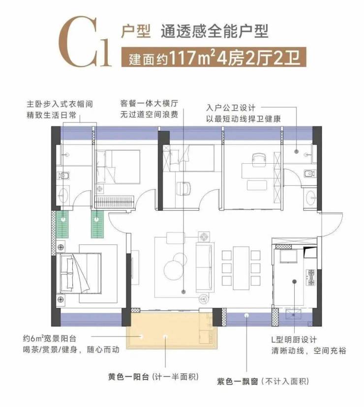 主力户型:建面约111㎡-174㎡纯居改善4-5房