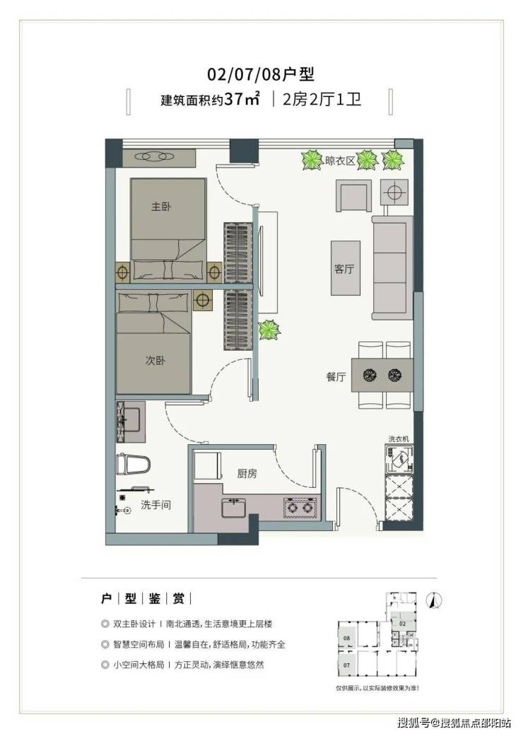 02/07/08户型(2房2厅1卫)建筑面积约:37㎡,套内使用面积约:52㎡