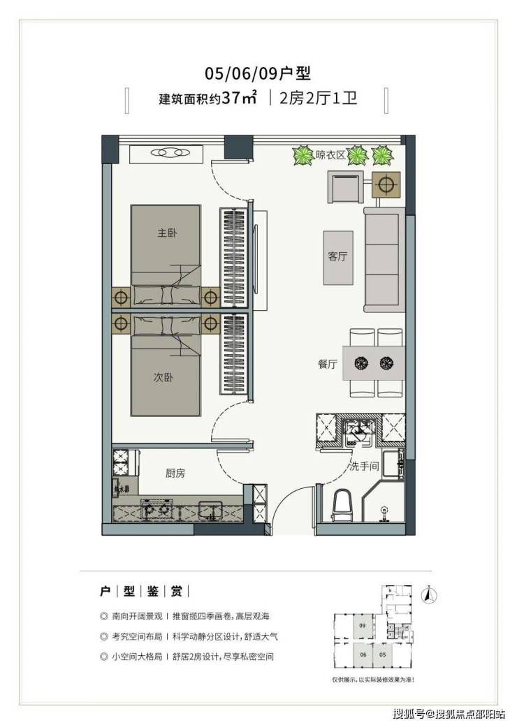 05/06/09户型(2房2厅1卫)建筑面积约:37㎡,套内使用面积约:52㎡