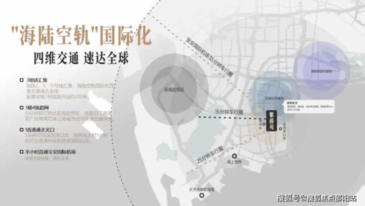 地铁2、11、13号线汇集,项目距离地铁2号线海月站(A出口)约200米;3横4纵路网:10分钟即可到达前海自贸区,至广州等其它珠三角城市也可快速无缝连接;5分钟可到深圳湾口岸、经跨海大桥1小时内可达香港中环和香港国际机场。