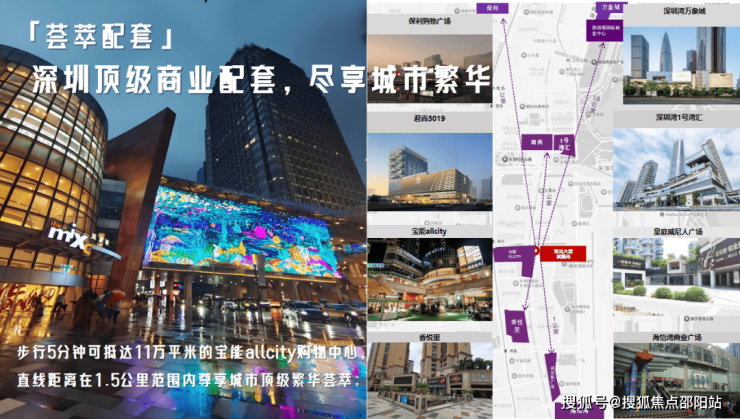 顶级商业配套,举步皆繁华。步行5分钟可抵达11万平米的宝能allcity购物中心,海岸城、保利文化广场、深圳湾万象城、皇庭威尼人广场等直线距离均在1.5公里范围内等,世界级的休闲资源,如亚太地区首个F1摩托艇永久赛场,深圳湾体育会场也在此汇集。