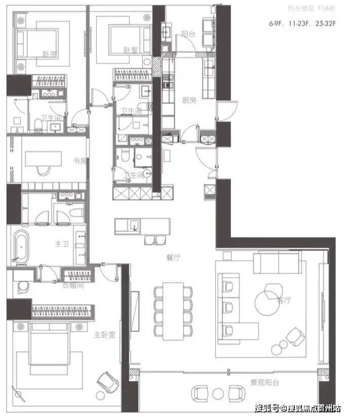 面积:230-280㎡3房3卫,300-380㎡4+1房5卫,576㎡4+1房6卫,600-700㎡6-7房7卫