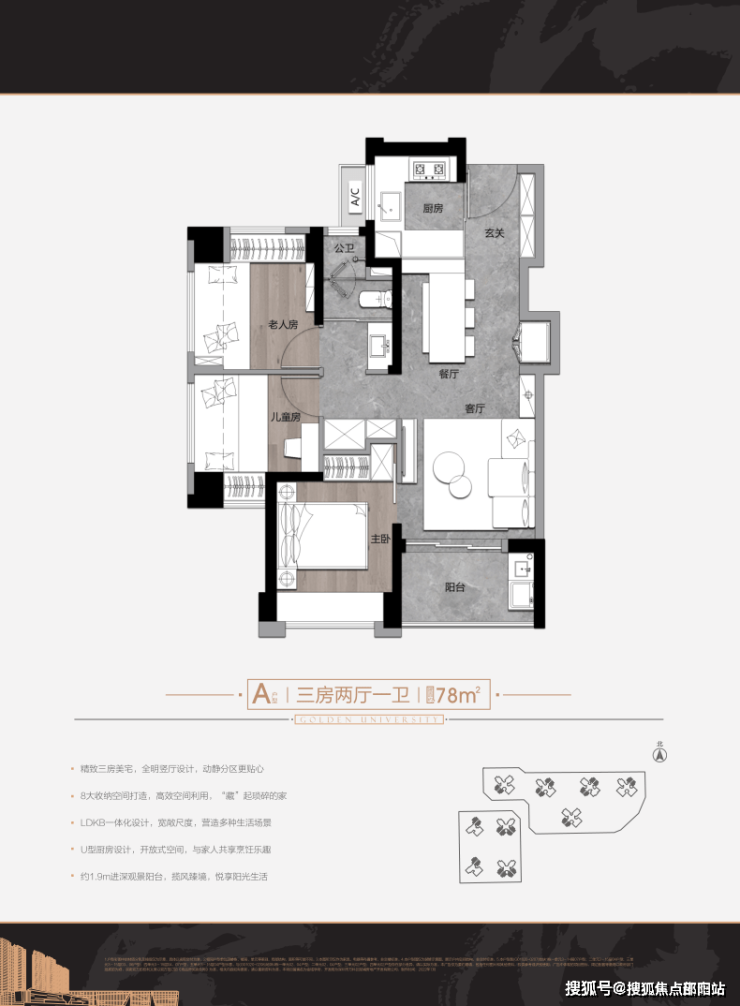 建面约78㎡户型图