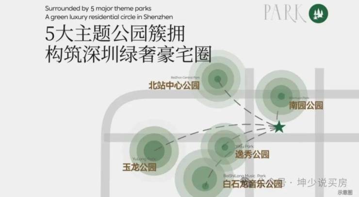 南园公园、北站中心公园、逸秀公园、白石龙音乐公园、玉龙公园五大优质公园环绕;另有超核“未来之眸”绿芯公园(在建中);项目自身打造约1.4万㎡新中式园林意境。