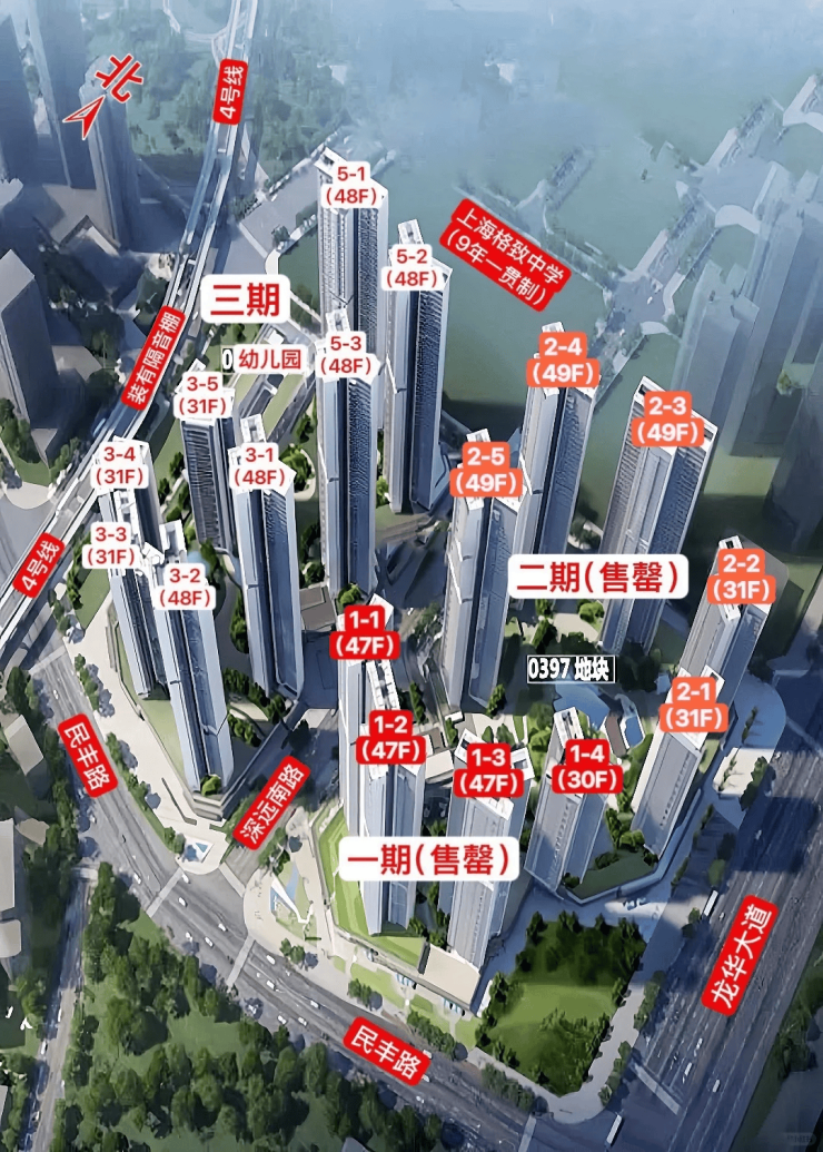 项目周边集聚深圳北站高铁枢纽、绿芯公园(建设中)、深圳外国语学校龙华校区等顶级配套,同时紧邻深圳新华医院(三甲)与深圳市第二儿童医院,形成“交通+商业+教育+医疗+生态”五位一体的稀缺资源网络。片区以现代化商务楼宇和高端住宅为主,城市界面整洁,未来规划为深圳中央活力区核心。