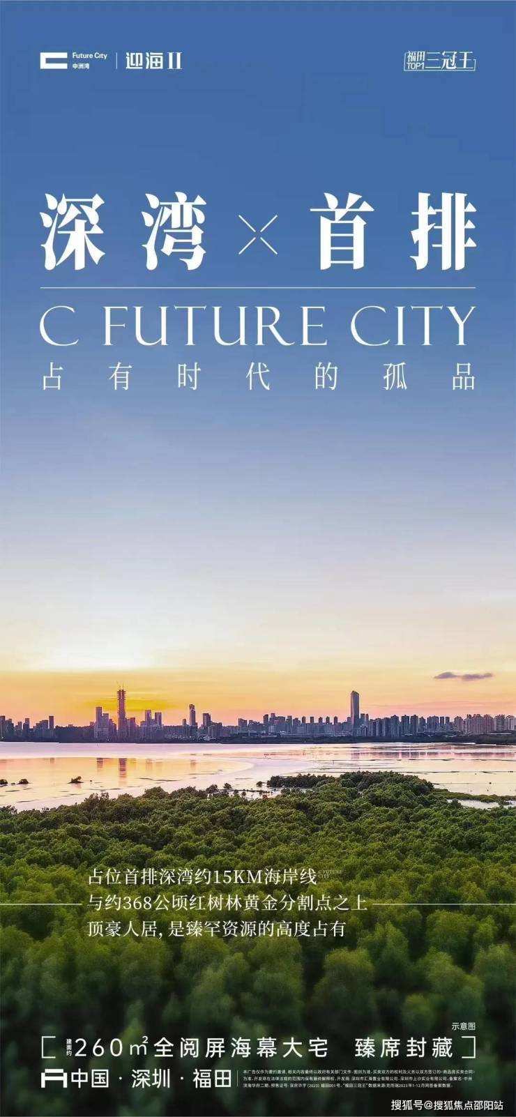 市中心黄金海岸线最后完善开发板块,唯一的中心与海双重占有的豪宅,368公顷红树林国家自然保护区、15公里的深圳湾滨海长廊、隔海对望1500公顷香港米埔湿地公园。