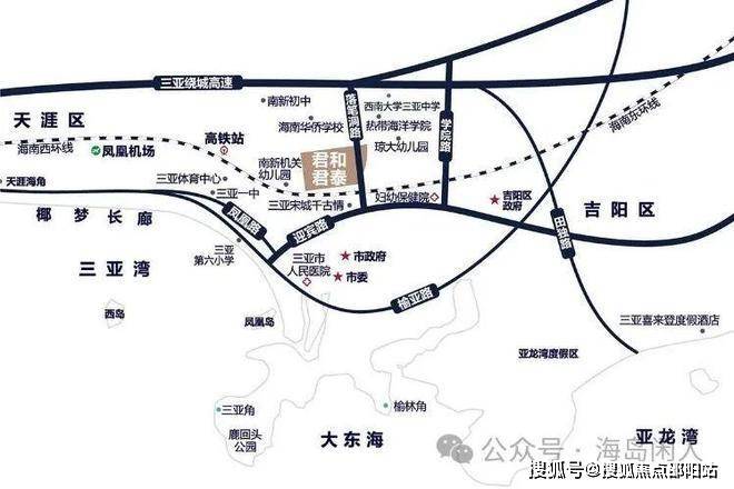 君和君泰项目位于三亚环城高速荔枝沟出口处(琼州学院对面),属于政府重点规划的月川—荔枝沟—抱坡岭片区,该区域重点规划定位为文化教育、商业贸易核心区;由学府教育区、公共服务区、行政商务区、生活配套区、文化商业区及品质居住区所组成。