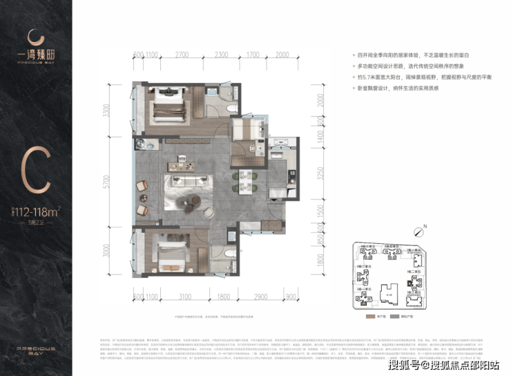 【建面112-118㎡3房2卫】