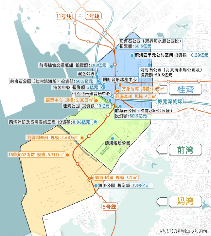 前湾占位前海三湾C位,纵向与桂湾、妈湾联动,横向与宝中、深圳湾后海互通,大前海发展全方位的价值资源聚拢于此。