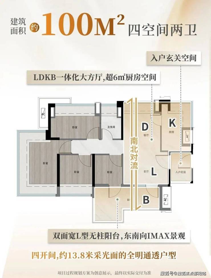 板楼01/04边户:112㎡四房,南北对流