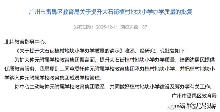 植村地块小学,官宣挂帅 “仲元附属”。