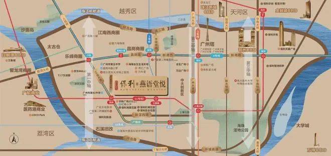 项目紧邻3.4万㎡的商业综合体,周边1-5公里范围内分布江南西、中大、江燕、乐峰广场、富力海珠城等多个商圈。1公里范围内即有万科里,生活配套成熟,购物、餐饮、休闲娱乐一应俱全。此外,项目附近700米即为庄头公园,1.2公里可达珠江后航道,提供良好的生态休闲环境。