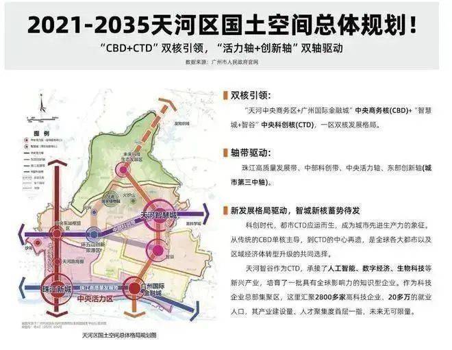 政策先行:在“十四五”规划中,天河的CTD中央科创区被提升至与CBD中央商务区同等的重要地位,形成天河的双核战略。