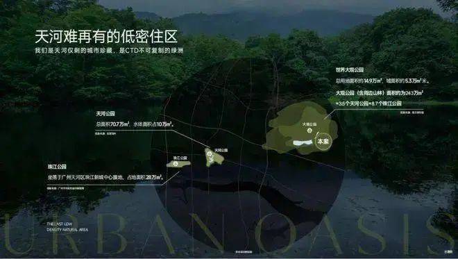 天河第三片绿洲,大观公园:公园用地面积约15万方,加上周边山林面积达到243万方,相当3.5个天河公园,8.6个珠江公园