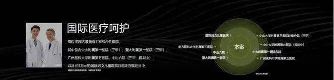 综合医疗资源:周边覆盖7家综合性医院,包括三甲医院中大附属第一医院、暨大附属第一医院等,中山六院及6.9万㎡国际妇女儿童医院(规划中)