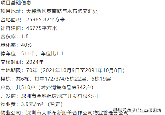 周边配套: 项目旁的大鹏新区妇幼保健院,已配备日常所需的基础医疗设施。距离项目约10km就是即将建成的三甲医院——大鹏新区人民医院,可提供床位2000张。佳兆业广场商业中心,距离项目车程仅5分钟。