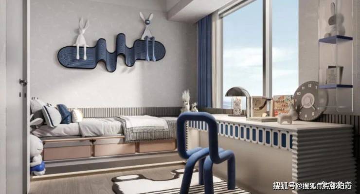在功能上,既设计了全明书房和奢阔主卧,还考虑到了亲子的成长陪伴空间。作为 4+X 的灵动户型,无论一个小孩还是两个小孩的家庭需求都可以满足,陪伴家庭的全周期成长。