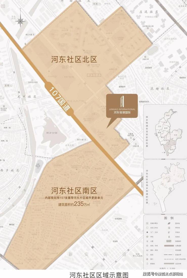 河东社区首发项目——河东骏濠国际,位于河东社区北区,总建面约16万㎡,汇聚商务公寓、办公、商业等于一体,多重复合业态共融,打造107国道封面都会综合体。