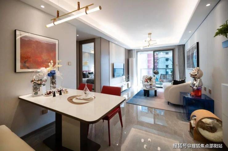 客餐厅阳台一体化设计,形成超强尺度感客厅;大尺度观景阳台,更是将阳光倾洒满屋。