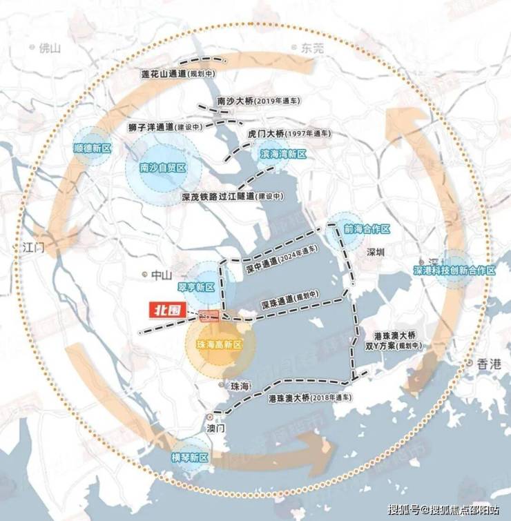 一来,站在“大桥经济”的大势之下,可以看见北围正处于珠海拥抱广深的桥头堡位置。