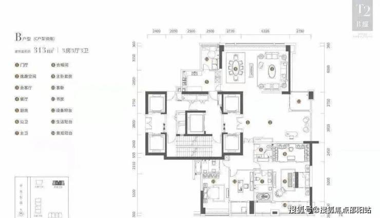 【1栋B座户型鉴赏】双梯入户 · 超9m奢阔景观面 · 动静分区