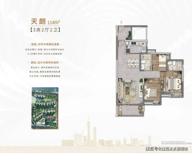 【建筑美学】建筑群采用现代简约风格,流线型外观与珠江波纹形成诗意呼应。外立面选用进口石材与金属饰板,在阳光下折射出细腻的光影变化。园林设计遵循"移步异景"的造园理念,通过多层次植被搭配与艺术水景,营造出四季流转的视觉盛宴。全南向户型均经过精密日照分析,确保每户享有最优采光与通风。