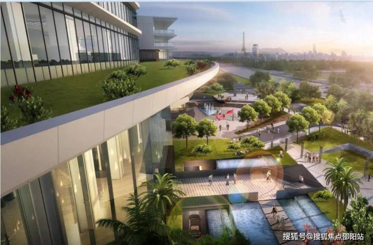 约50米宽城市绿化带汇成开阔大气的前广场,居高临下视觉