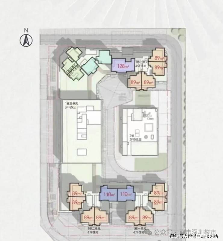 项目由远洋集团打造,位于坂田街道五和大道与光雅园路交汇处东北侧,紧邻地铁10号线光雅园站B出口。总占地面积约1.36万㎡,共由4栋总高44-47层的住宅+1栋34层的办公组成:其中,1栋1、2单元为47层住宅,5单元为45层住宅,约615套住宅(含50套回迁房);1栋4单元为41层人才房,共180套人才房;1栋3单元为34层写字楼;2栋规划为3层幼儿园。
