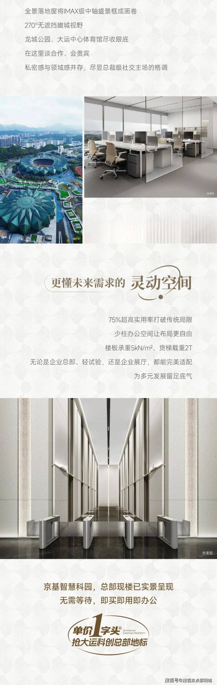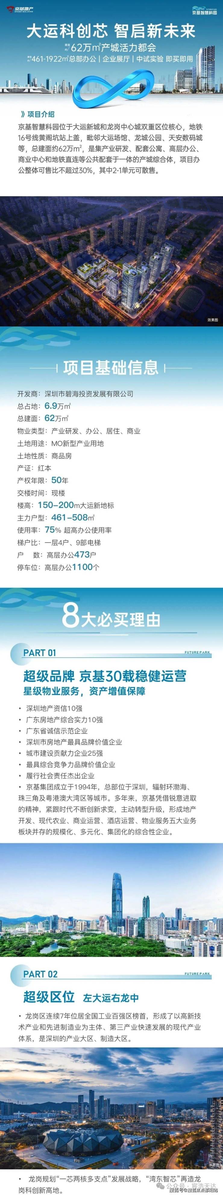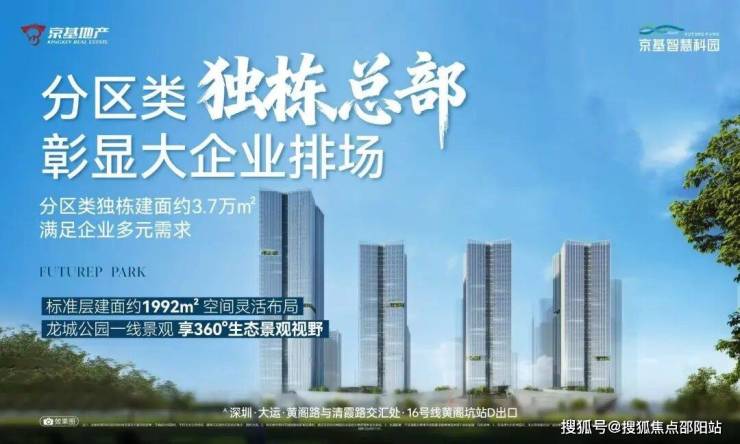单价1字头 抢驻大运地标总部商务💯现楼交付❤🔥大运核芯⭕地铁直连💹龙城公园💢京基品牌✅超高配置——————————————————建面约6⃣2⃣万m²产城活力都会单套约461-508m²总部办公集群