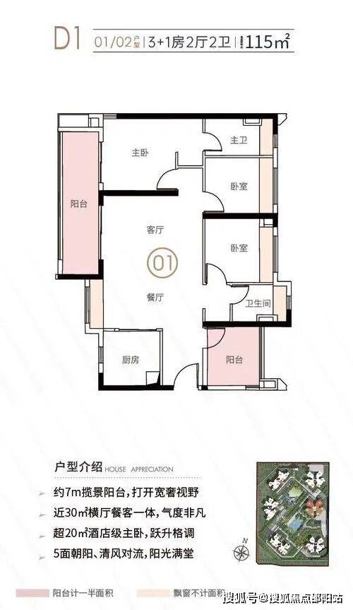 还有建面约115㎡3+1房2厅2卫,做到五面朝阳,空间尺度更是令人惊喜。