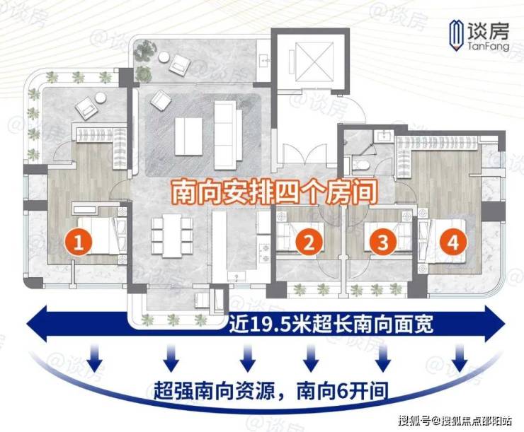 全屋打开南向6开间,实现近19.5米超长南向面宽,试问谁能拒绝满屋布满清风阳光。会呼吸的生活居所,使情绪价值一下拉满。