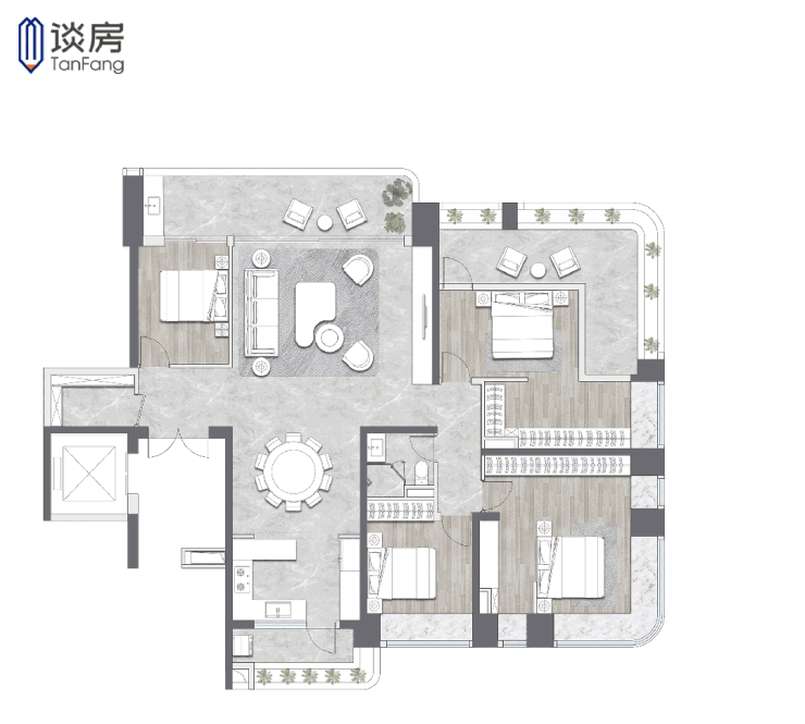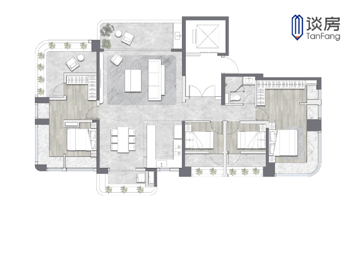 设计师将4个房间均安排在南侧: