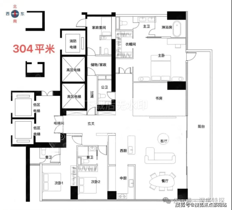 · 304㎡户型: 低区最大户型,空间布局奢华,功能分区明确,满足多代同堂的居住需求。