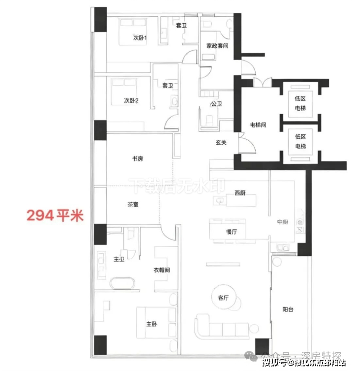 · 269-294㎡户型: 通常是四房以上大户型,注重家庭互动空间与个人私密空间的结合。