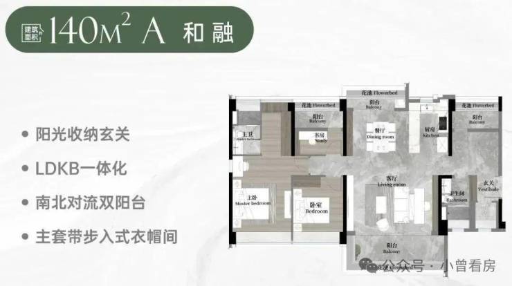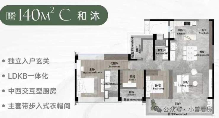 140平方和沐:(3+1)室2厅2卫,入户玄关+超大阳台+双套间