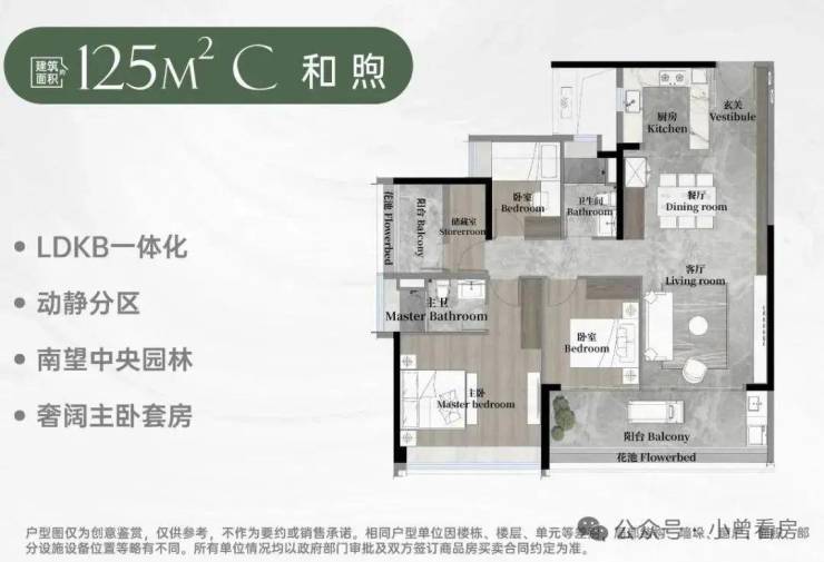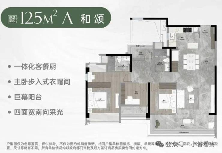125平方和颂:(3+1)室2厅2卫,超大阳台